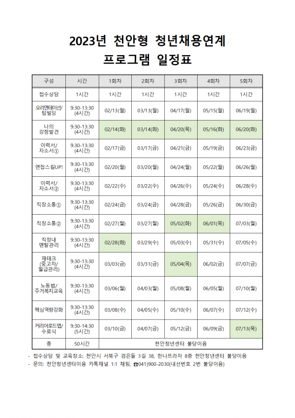 2. 교육 프로그램 이수 시 천안청년취업 응원금(천안사랑카드 50만원) 지급