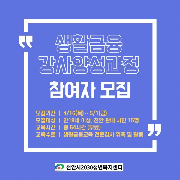 '생활금융 강사양성과정' 참여자 모집