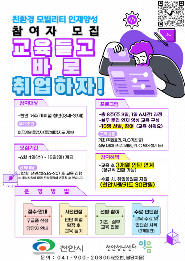 - 수료 시, 취업응원금 지원(천안사랑카드 30만원)